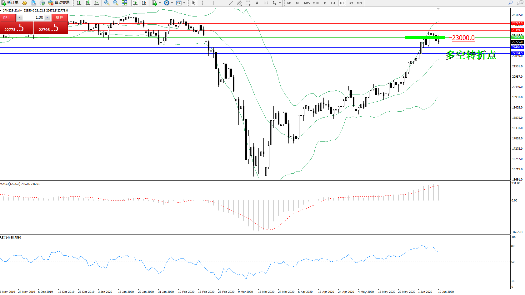 日经225指数610日(周三)收盘上涨14.47点,涨幅0.06%,报23105.50点。日本内阁府10日发布的报告显示,今年4月,作为民间设备投资的先行指标,日本不含船舶和电力的核心机械订单额经季节调整后环比大降12%。与上月0.4%的环比降幅相比,内阁府最新公布的4月核心机械订单降幅骤然扩大,超过各界预期。此前民间机构的平均预测值为下降8.6%。多数受访经济学家暗示,日银下周会议将按兵不动; 在受访的47位经济学家中,有72%的人预计,日本央行将在下周会议上保持政策不变;尽管预计央行不会采取重大举措,但市场预计其将以某种形式加强对企业的贷款支持。