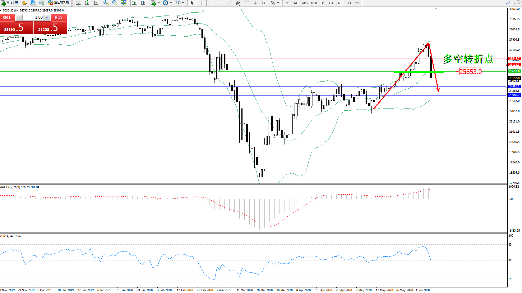 技术点评:多头动力延续布林带指标上轨持续震荡上扬后,高位遇阻出现急速回撤下移走势,跌破布林带指标中轨后有继续下行态势,且空头动力尚未有止步迹象,布林带指标呈收口走势中,关注中轨附近节点,MACD指标处于0轴线上方多头区域开始平缓下移中,RSI指标处于多头区域急速下挫破50均衡线后,即将进入空头区域徘徊态势;