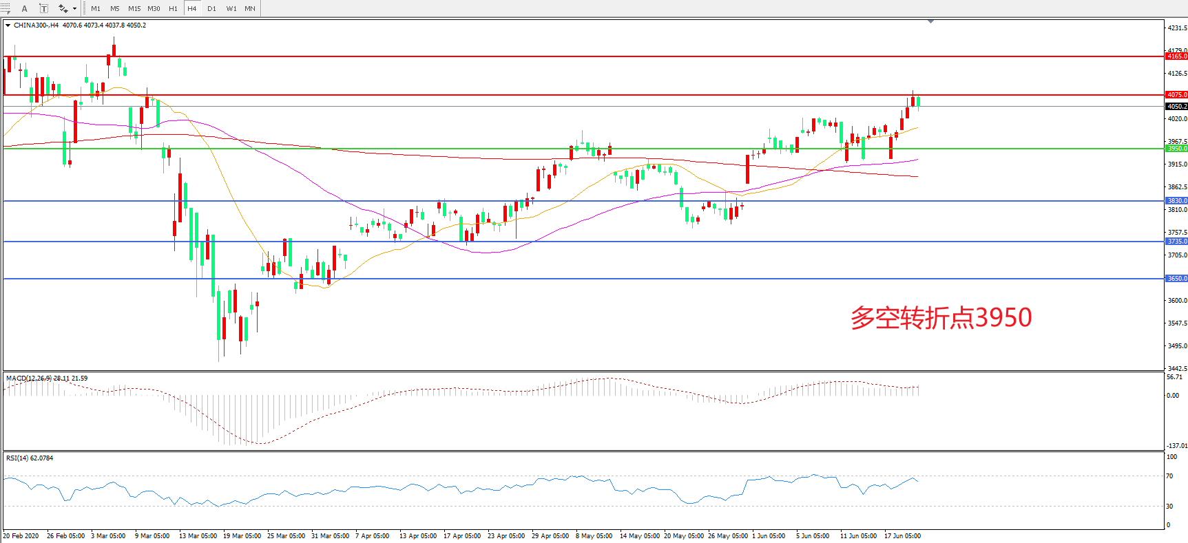 周五(6月19日),沪深300小幅低开,随后快速拉升,冲击4075阻力,午后小幅下行,显示上方压力依然较大,最终收报4050.2点。随着金融改革、开放和让利的不断推进,金融支持实体高质量复苏将是未来一个阶段重要线索,这将有利中国资本市场的估值,也将吸引更多增量长期配置资金的流入。