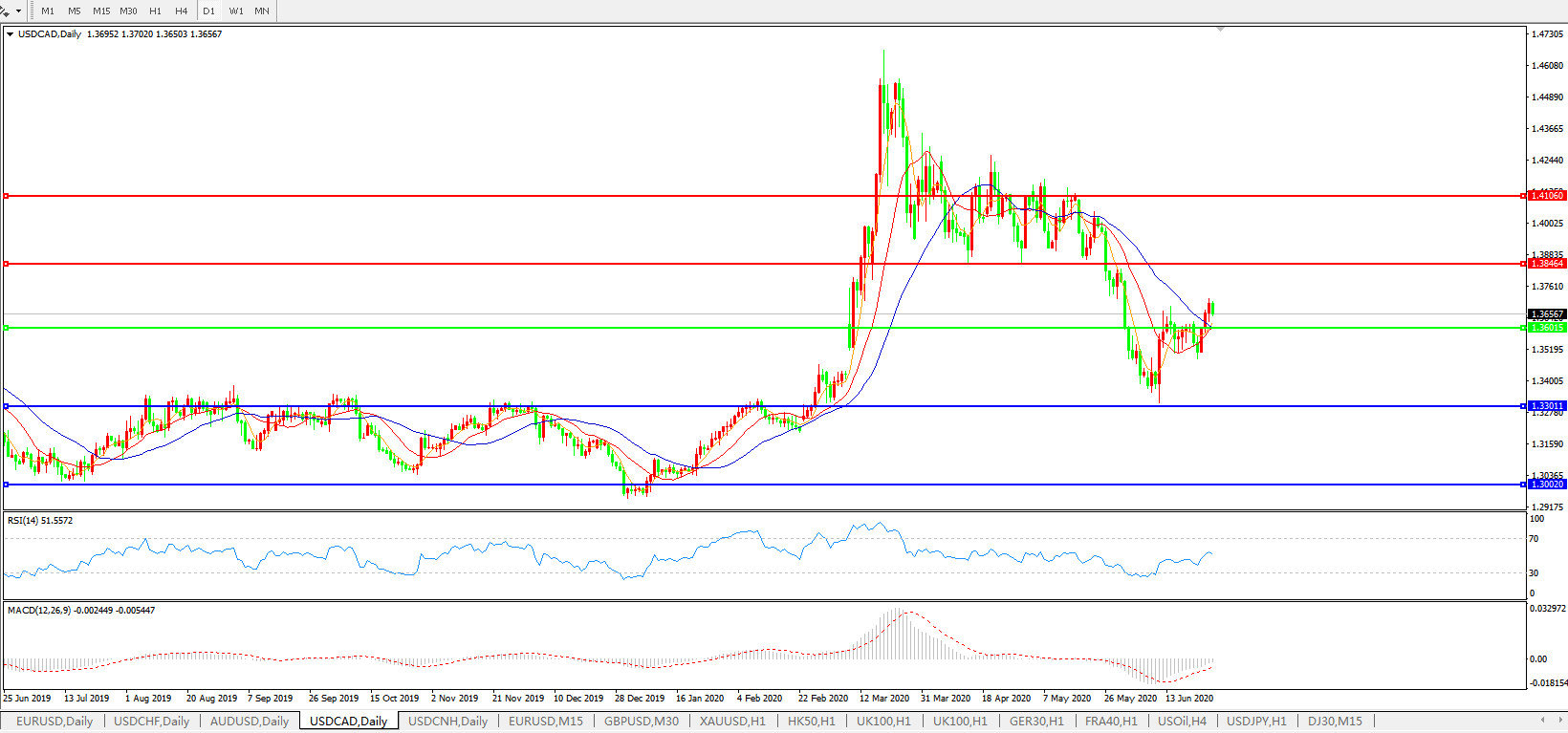 美元兑加元突破1.37关口,创6月1日以来新高至1.3716,一方面由于NYMEX原油价格本周在上触40美元之后再度大幅回落,连带拖累加元走势,另一方面也因为风险偏好恶化,反而促使资金重返美元计价资产市场。这使得美元兑加元日内仍有望站上30日均线切入位1.3664,从而进一步巩固近两周半以来的反弹趋势。全球尤其是西半球疫情持续的状况令投资者不得不重新买入美元现金避险,而美国解封进程的推后对于能源需求也是持续打击,这都暗示着加元汇价后市有相当大的概率将会进一步承压。