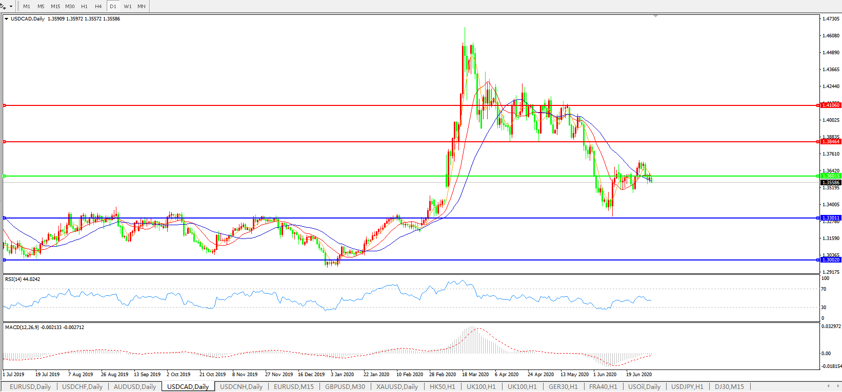 交易策略:在1.3600之下,看跌,目标价位为1.3300、1.3000