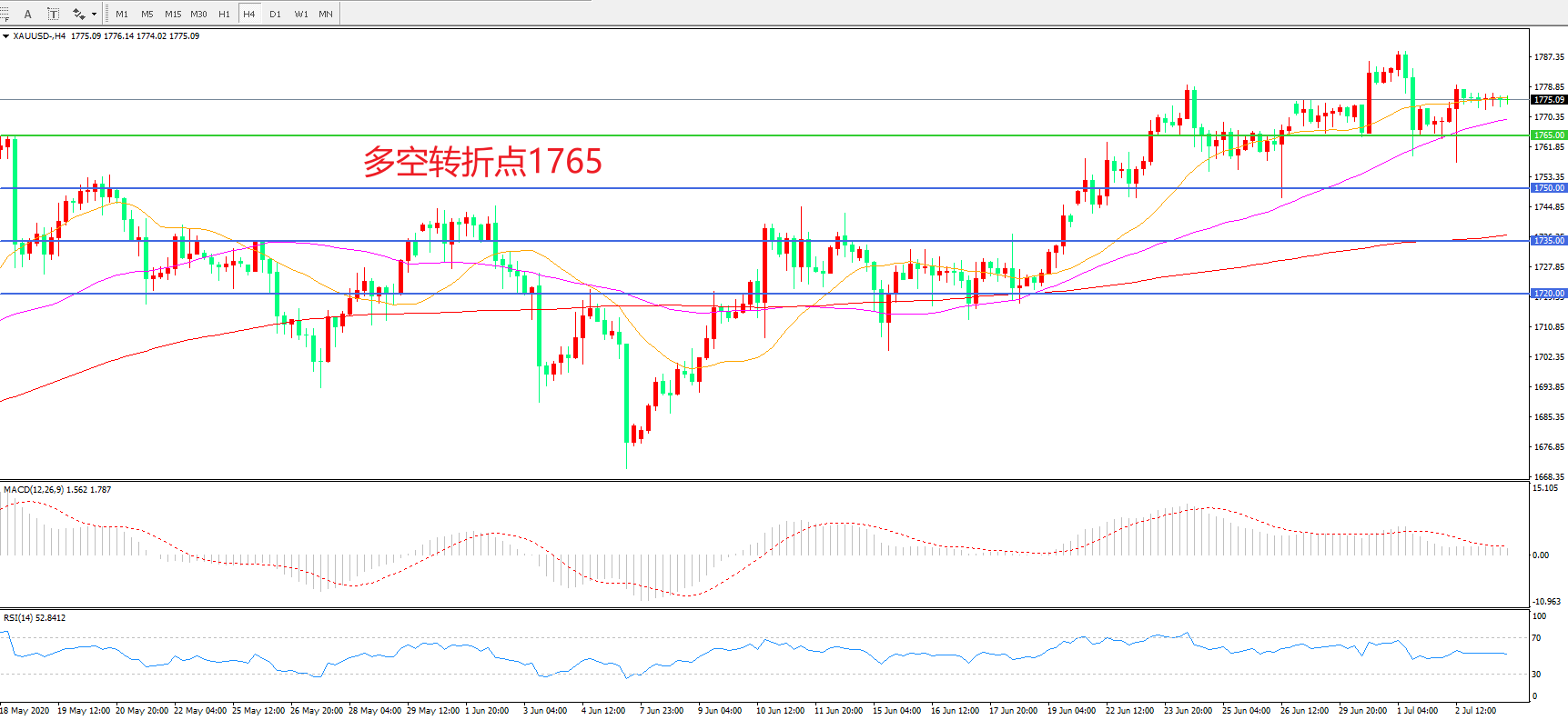 多空转折点:1765.00