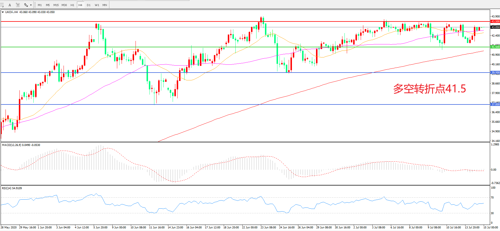 周三(7月15日)凌晨,根据美国石油协会公布的数据显示,美国当周API原油库存大幅减少832.2万桶,远超市场预期,数据公布后,布伦特原油快速走高,截止发稿前收报43.04美元/桶。从昨天公布的OPEC月报来看,OPEC目前整体的减产执行率为107%,远远好于5月份,今晚22:30分公布的EIA原油库存数据将为短期市场走势提供重要参考,务必重点关注。