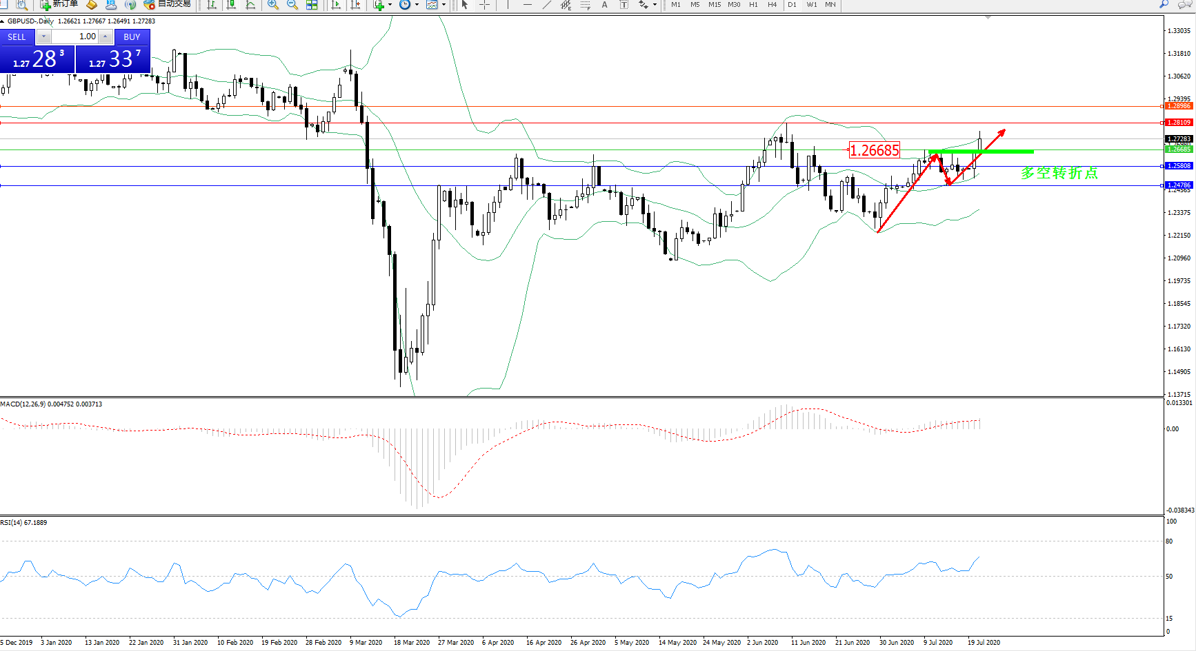 交易策略:1.26685上方看涨,目标1.28109、1.28986