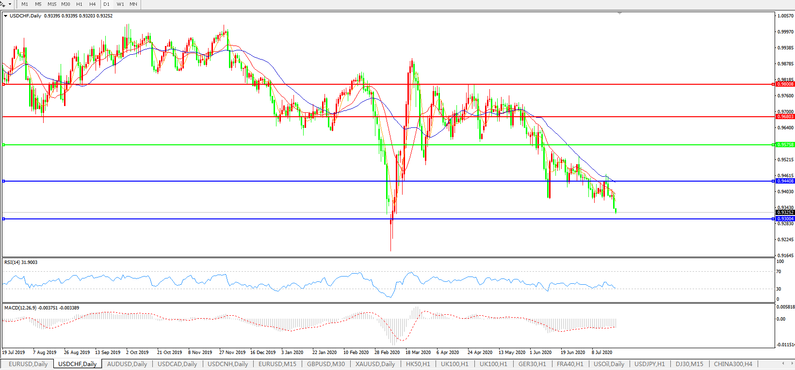美元兑瑞郎USDCHF 日线图: