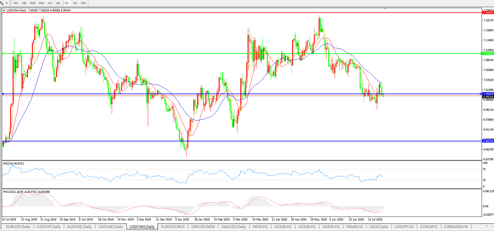 交易策略: 在7.1000之下,看跌,目标价位为7.0000,然后为6.8820。