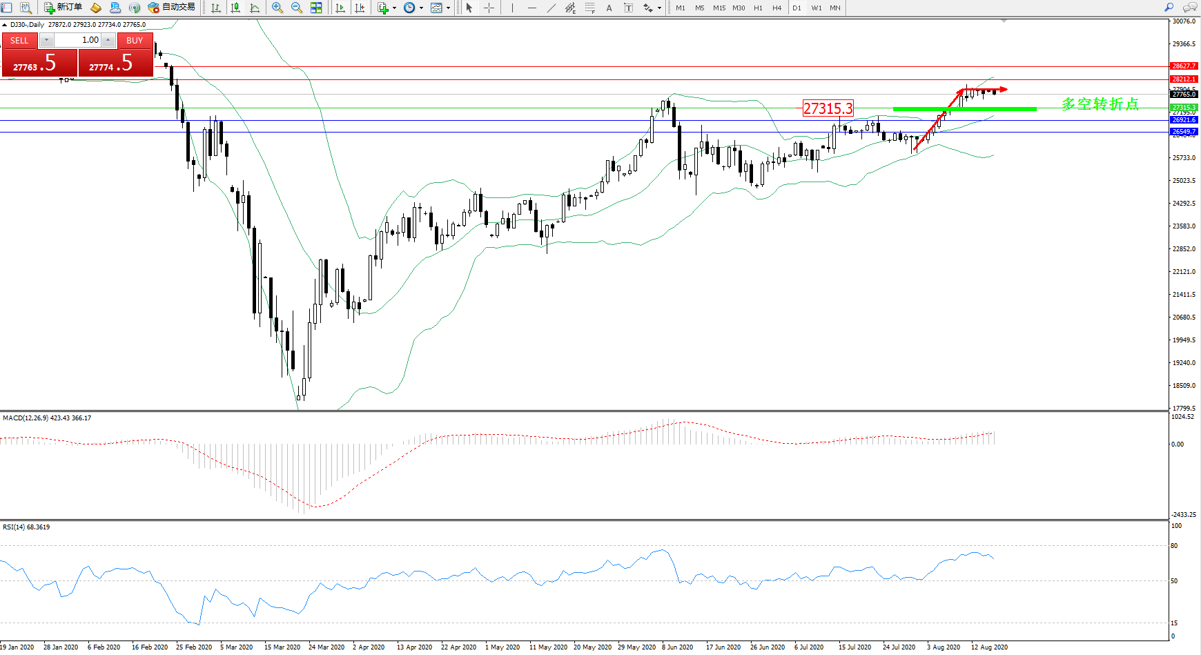 技术点评:多头动力延续布林带指标上轨附近持续震荡上扬走势良好,前期高位破位后维持高位整理平移中,但有继续拉升态势,上行态势良好,且未有止步迹象,布林带指标呈张口走势中,且有扩大波幅迹象,MACD指标长时间处于0轴线上方维持窄幅弱势整理平移中,RSI指标处于多头区域持续整理向上移动态势良好;
