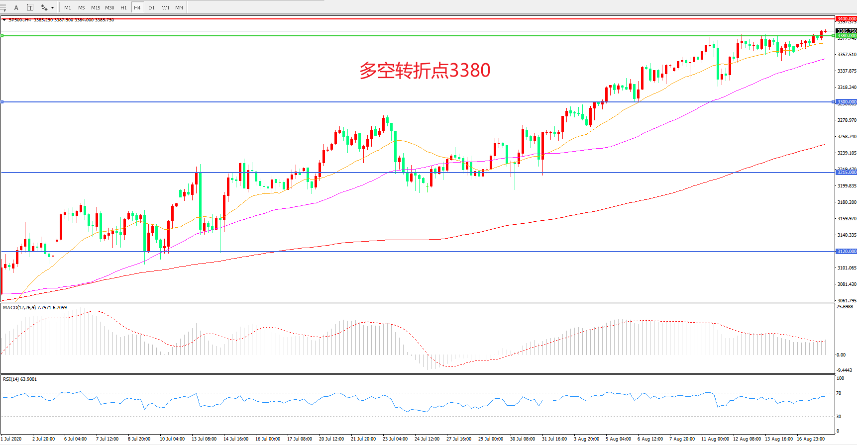 周一(8月17日),市场继续在等待美国国会达成经济刺激相关协议,但疫苗研发利好提振了市场情绪,标普500小幅上行,收报3386.25点。未来三个月,美国大选是影响全球市场的核心因素,大选局势和因此派生出来的政策,将左右市场走向,务必重点关注。