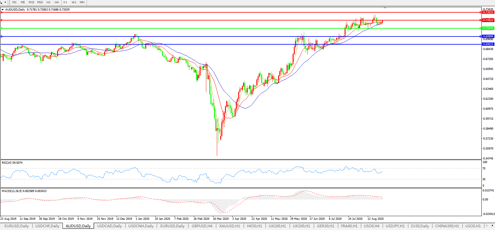 交易策略:0.7100上方看涨,目标0.7200、0.7300