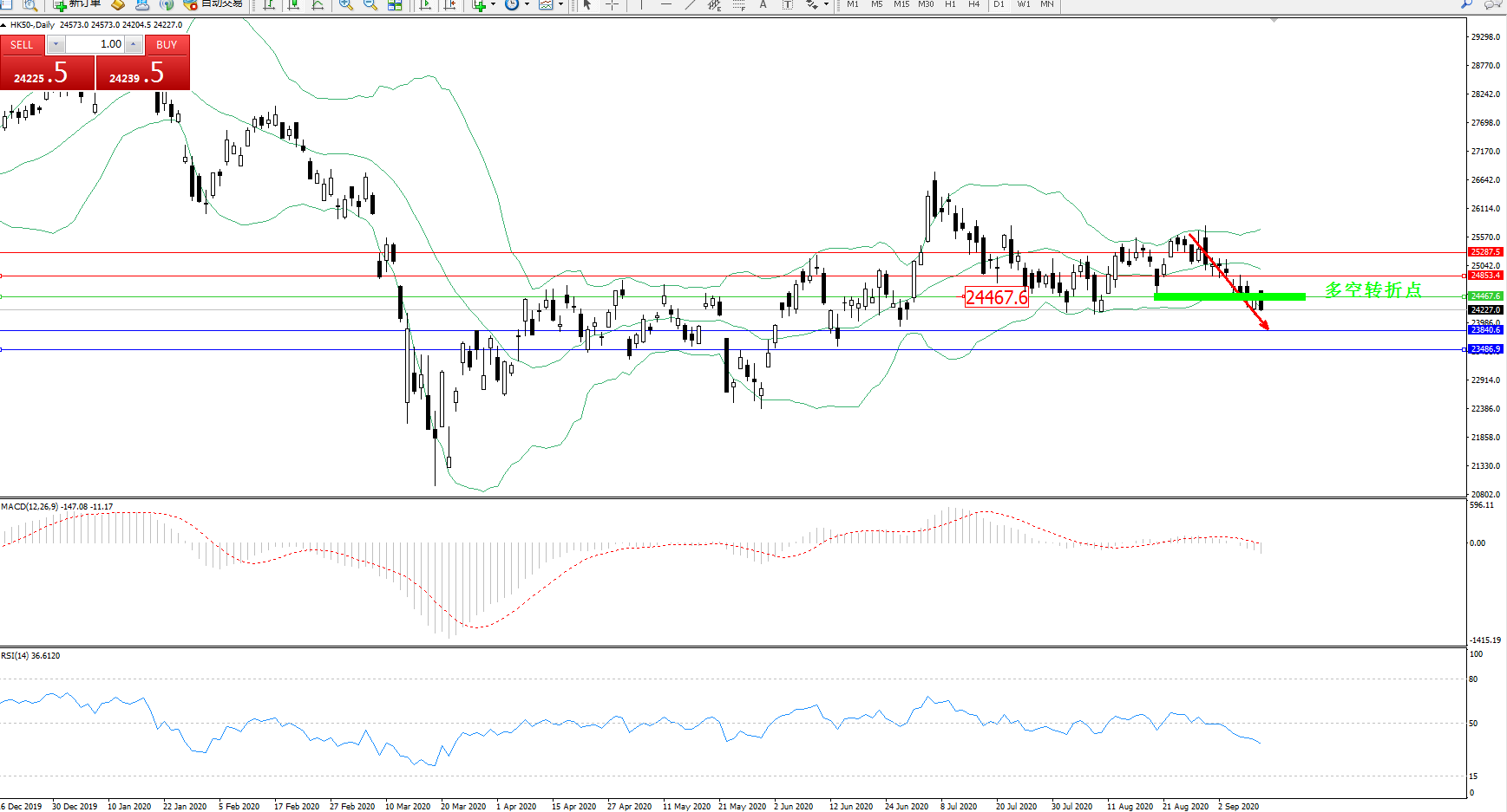 技术点评:长时间维持在布林带指标通道内弱势震荡平移后,高位上行触及布林带指标上轨附近节点遇阻开始回撤下移,跌势布林带指标下轨附近有继续下行态势,布林带指标有即将张口态势,MACD指标处于0轴线附近弱势徘徊后终于迎来破位下行走势,RSI指标跌破50均衡线进入空头区域持续下移中;