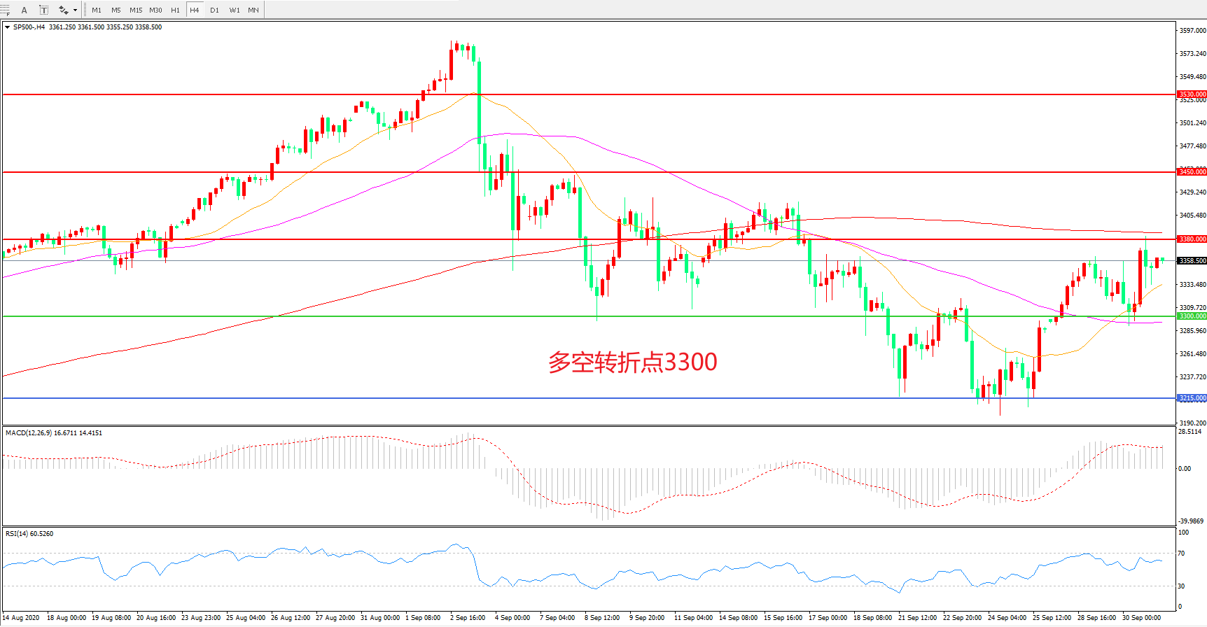 多空转折点:3300.00