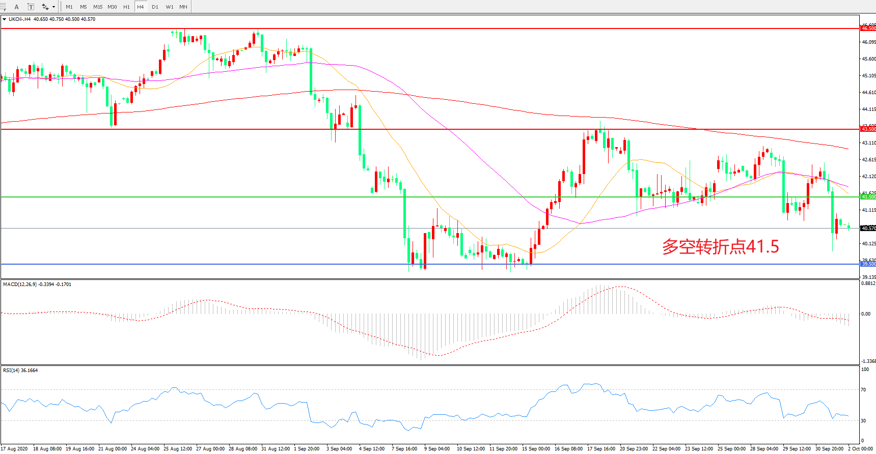 交易策略:  在41.50之下看跌,目标39.50      37.00