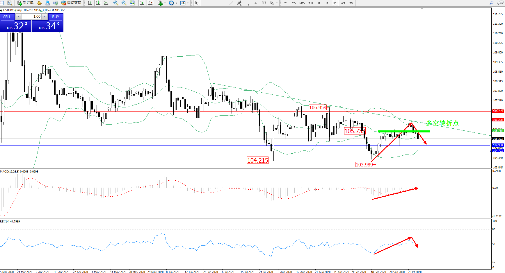 多空转折点:105.735