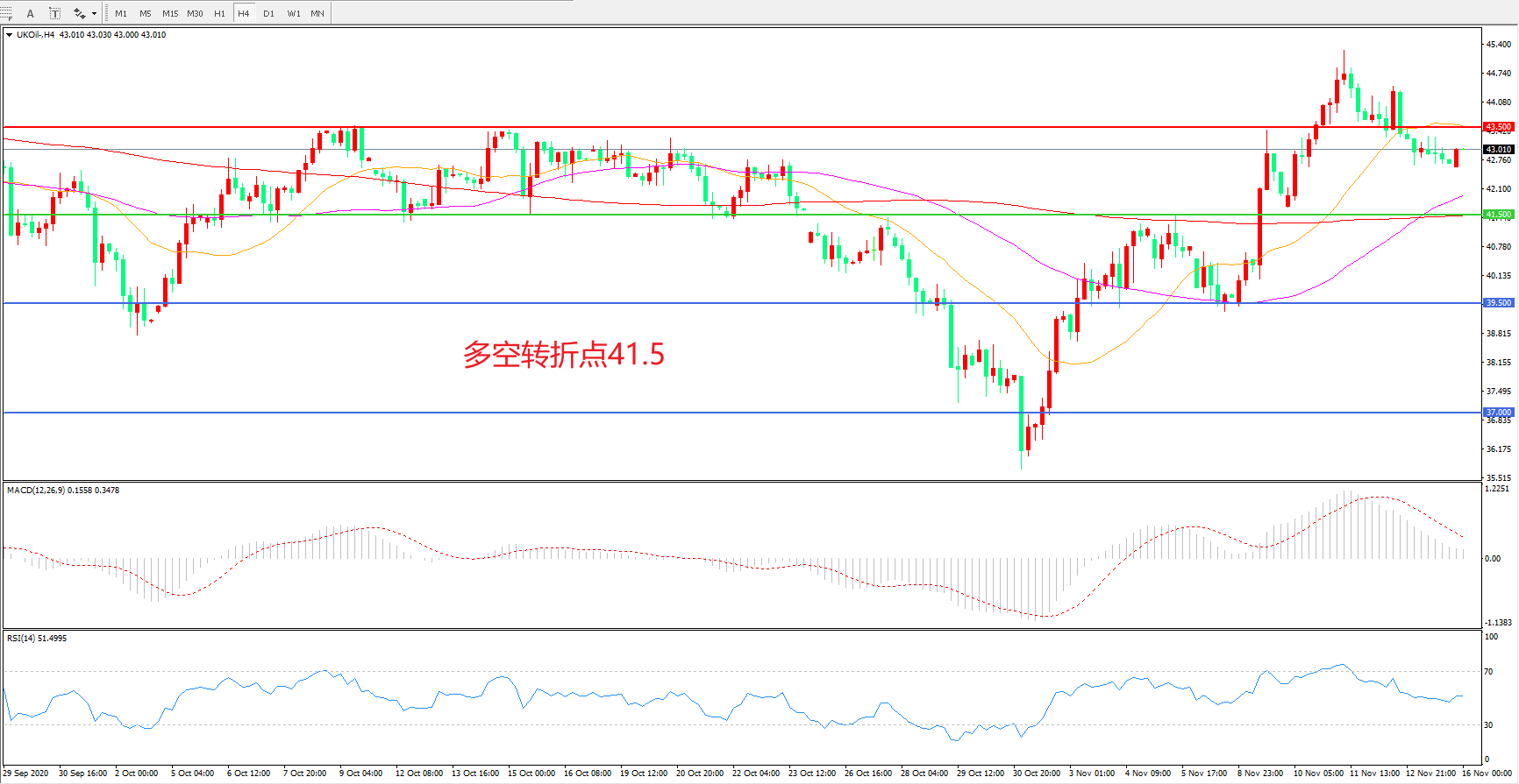 交易策略:  在41.50之上看涨,目标43.50      46.50