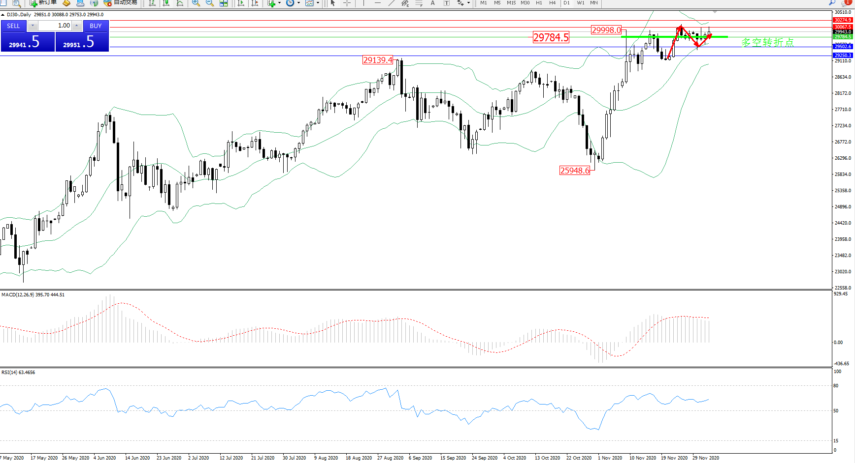 道琼斯指数12月3日(周四)收盘上涨85.70点,涨幅0.29%,报29969.52点。美股三大指数收盘涨跌不一,辉瑞大幅削减了推出新冠疫苗的目标。有效新冠疫苗的研制在年底前取得进展,推动华尔街主要股指近几天达到创纪录水平。尽管疫情对经济造成了破坏,辉瑞的消息冲淡了稍早的涨幅,正在经历年终的圣诞涨势,但今年将毫无声色。刺激经济计划预期重返市场,看来可能会在年底前得到经济迫切需要的东西。美国国会议员试图敲定一项为陷于困境的美国经济提供援助的协议。有迹象显示,援助规模达9080亿美元的两党提案正在获得支持,而美国总统特朗普表示将支持出台一项援助法案。美元指数下跌0.35%至70.70,盘中一度低见90.50,为2018年4月以来最低;对美国有望达成财政刺激协议的乐观情绪一度导致其下跌0.6%,并且该指数在整个纽约交易时段保持跌势。