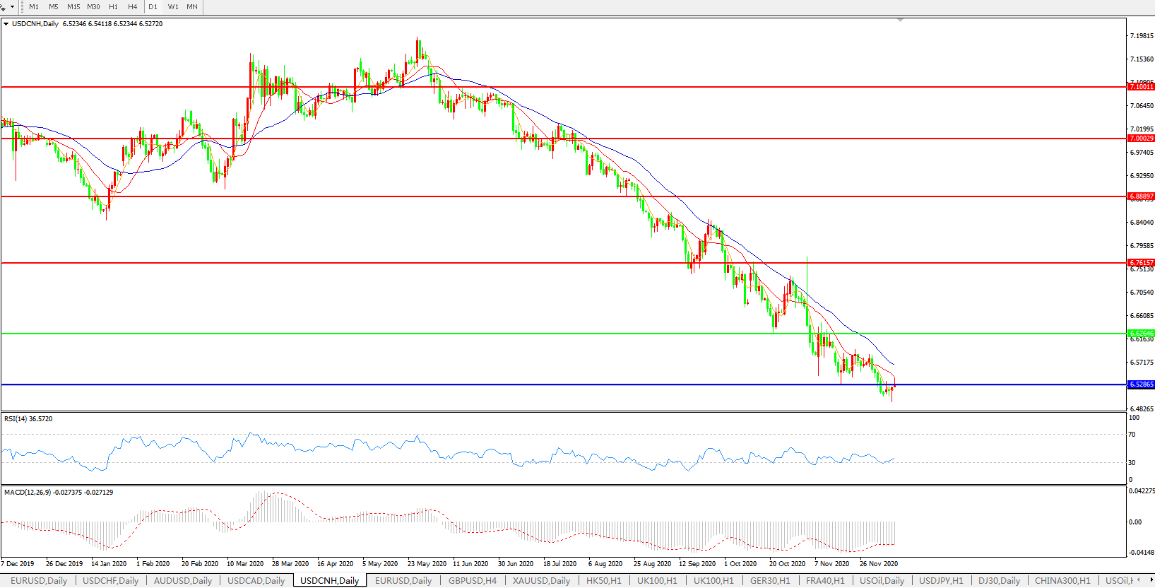 交易策略: 在6.6265之下,看跌,目标价位为6.5286,然后为6.3500。