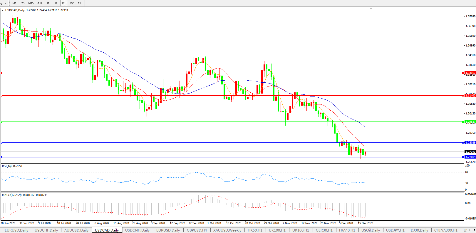 技术面简析:日线图均线呈有序空头排列,汇价低位持续承压,MACD运行于0轴下方且量能0轴下持续放量,RSI低位整理,预计短期汇价大概率将在整理后进一步走低。