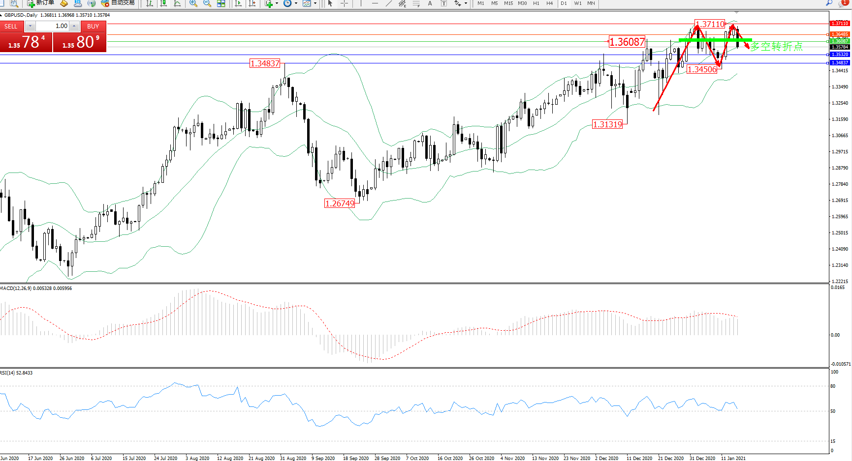 交易策略:1.36087下方看跌,目标1.35320、1.34837