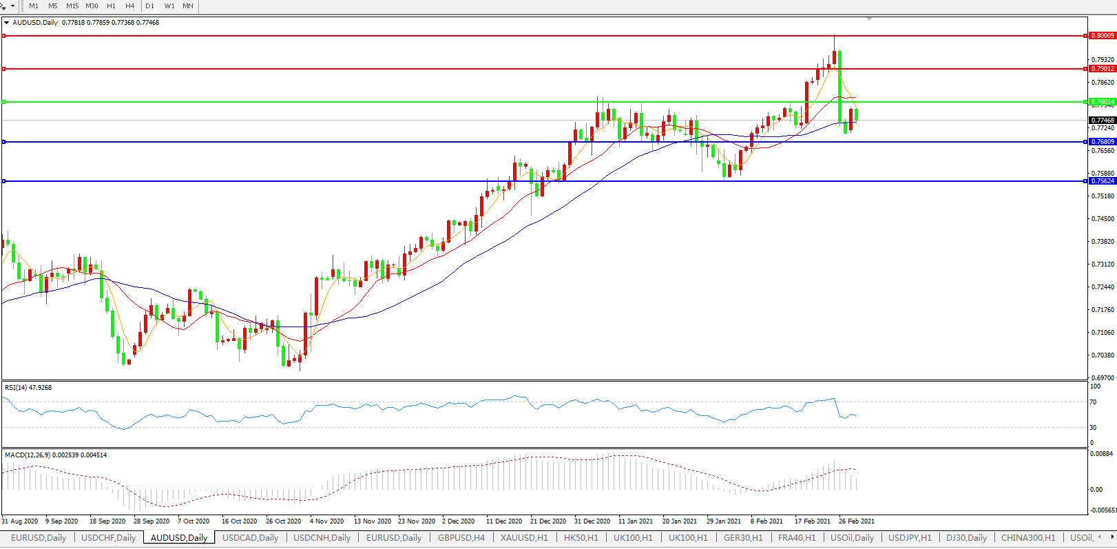 备选策略:0.7800上方看涨,目标0.7900、0.8000