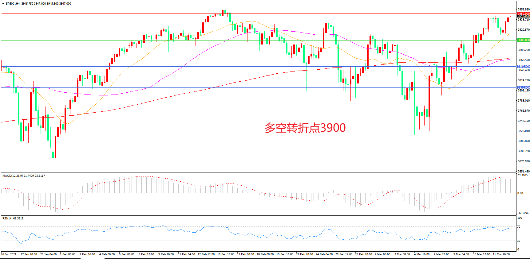 多空转折点:3900.00