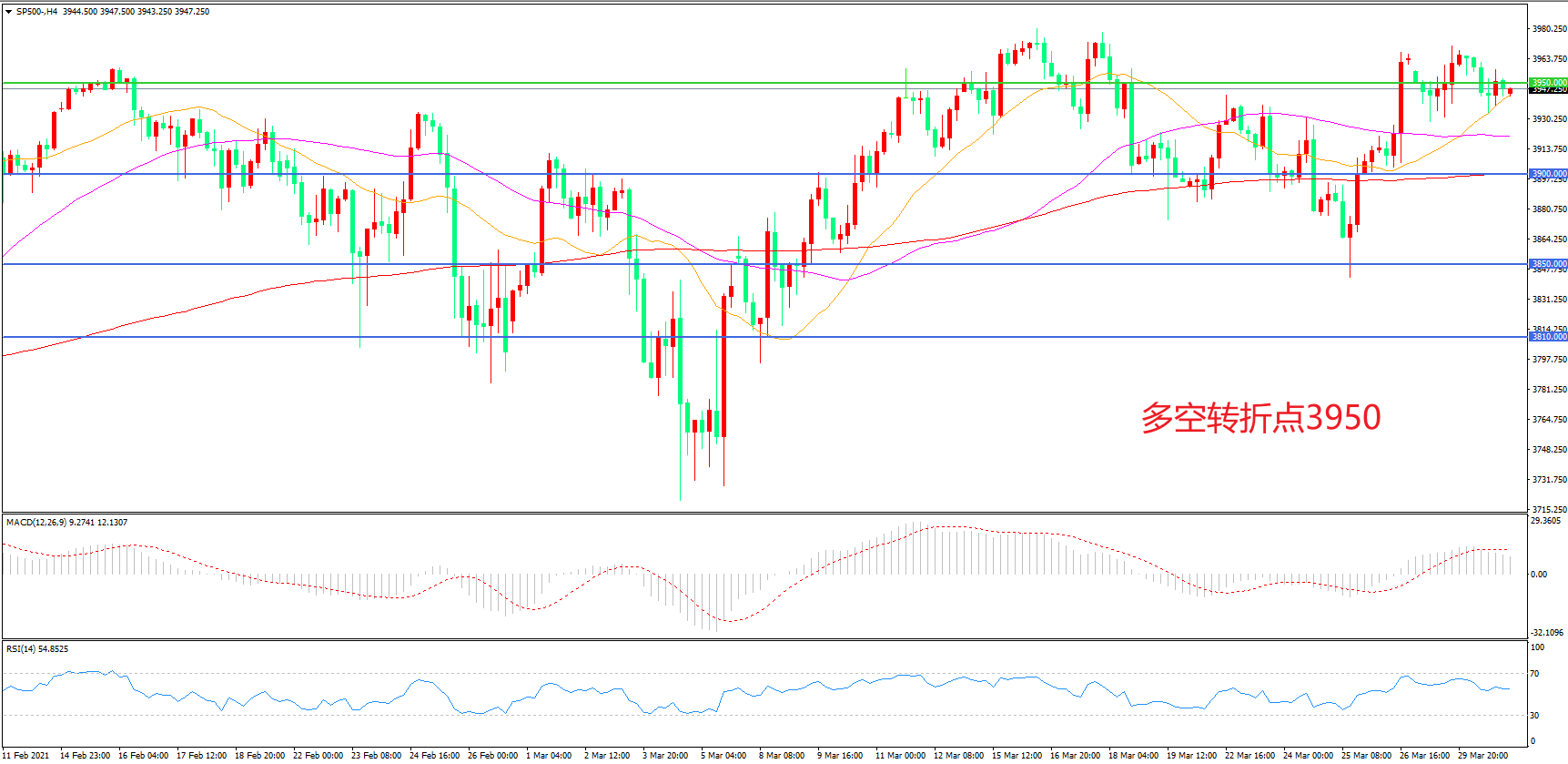 多空转折点:3950.00