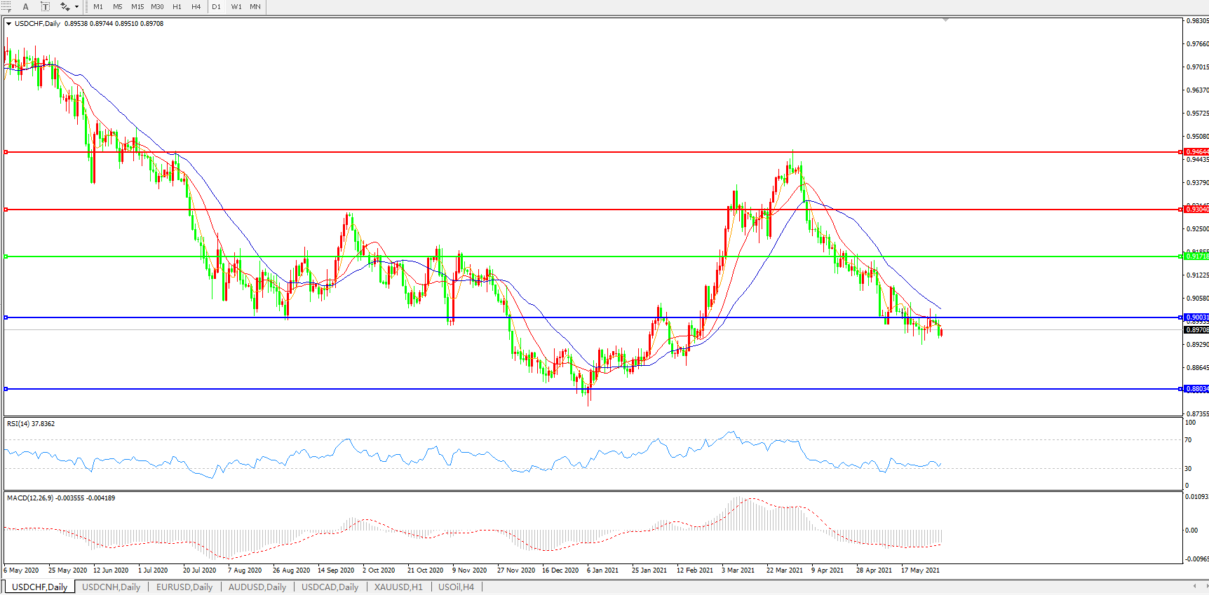 技术面简析:日线图均线发散下行,汇价大幅下行后弱势整理,MACD运行于0轴下但量能0轴开始缩量,RSI再度走弱,预计短期汇价大概率将在反弹修正后进一步下行。