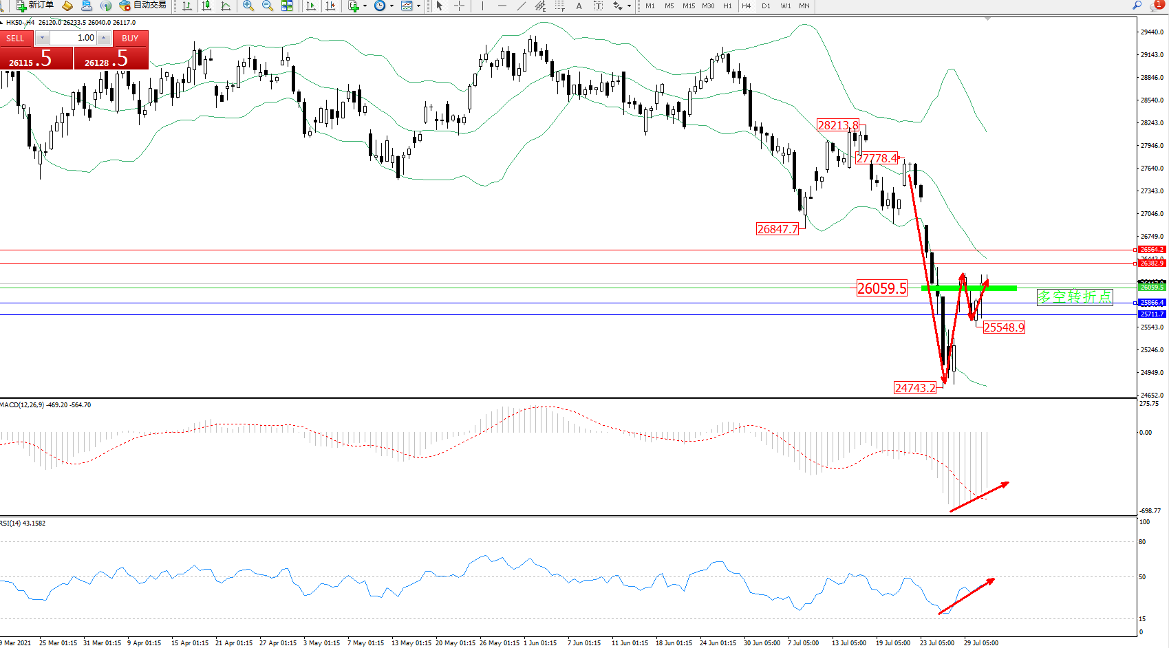 技术点评:空头动力延续布林带指标下轨附近持续下挫后,抵达24743位置震荡强势反转上移,纠结于布林带指标中下轨区间持续震荡平移中,多头动力有伺机入场态势,布林带指标呈收口走势持续中,MACD指标处于空头区域低位震荡缓慢上移,RSI指标处于空头区域低位震荡持续向上移动后开始平移;