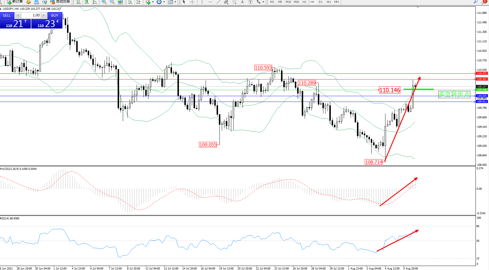 交易策略:110.146上方看涨,目标110.357、110.472