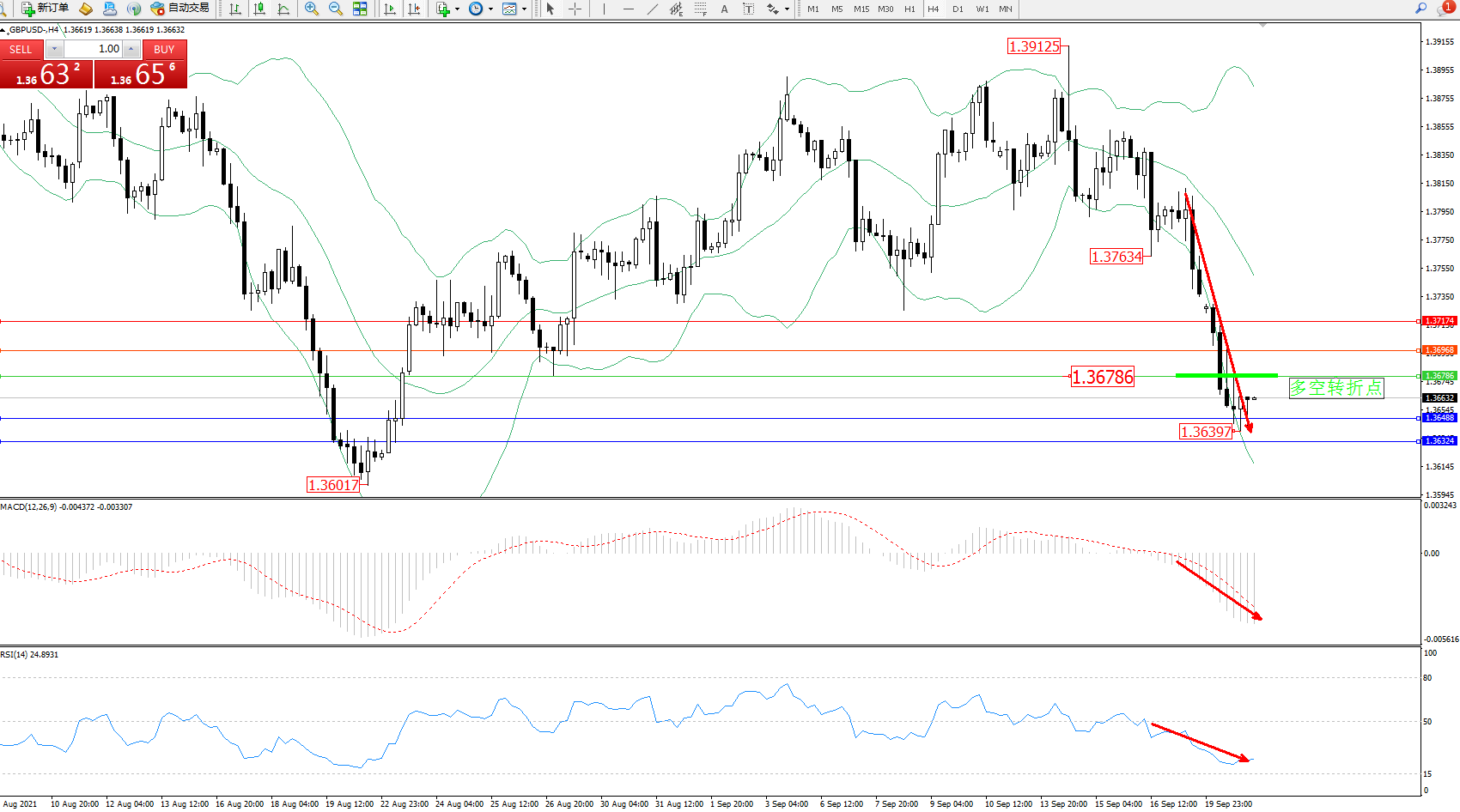 交易策略:1.36786下方看跌,目标1.36488、1.36324