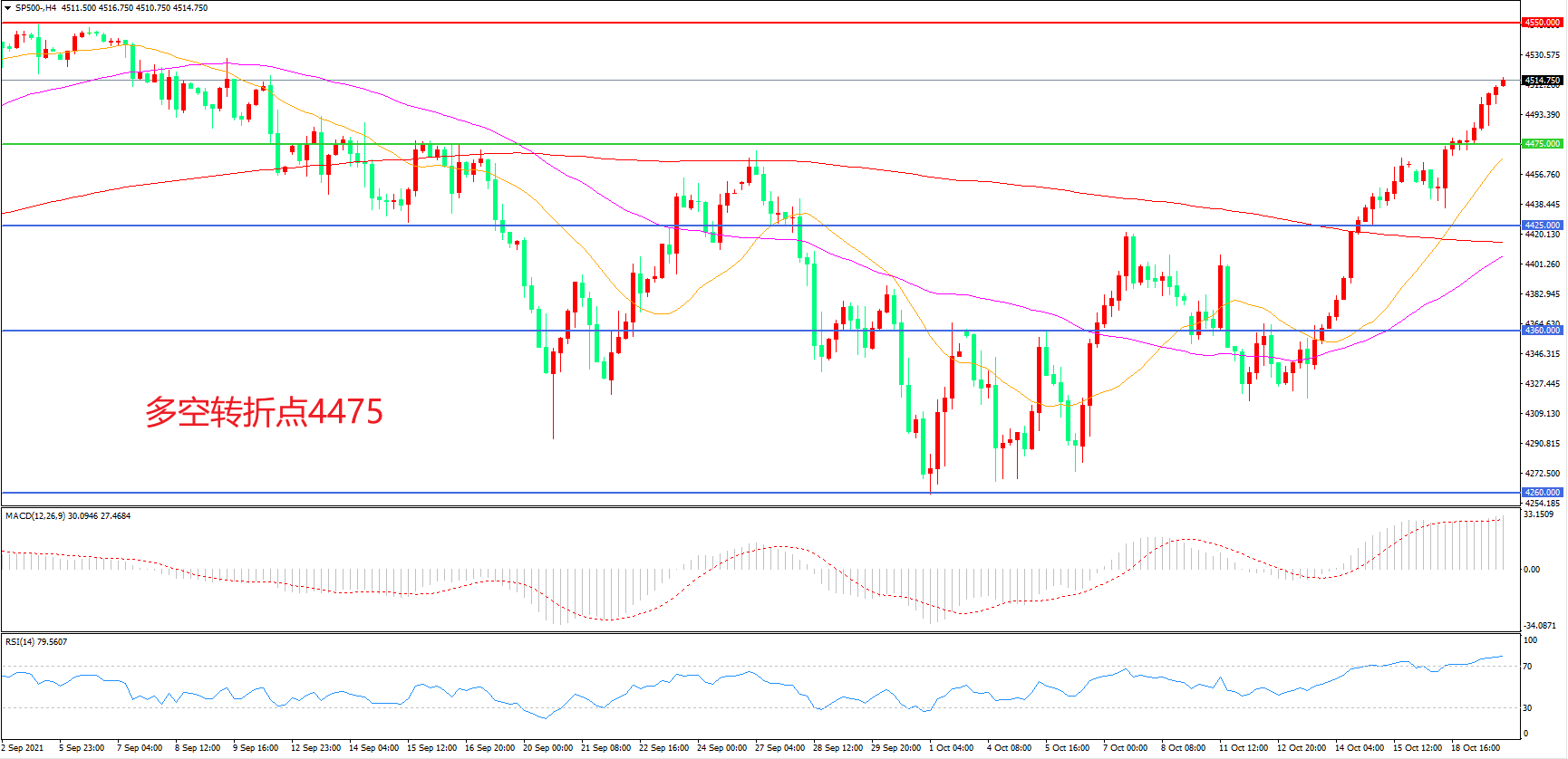 周二(10月19日),强生、宝洁等各大公司三季报业绩向好,缓和市场对新冠疫情持续和成本上升打击企业盈利的担忧,美国三大股指齐涨,标普500延续强势表现,收报4514.75点。从财报表现看,尽管市场面临能源价格上涨和供应链中断的双重压力,但企业利润依然能继续增长,短期标普延续强势概率较大。