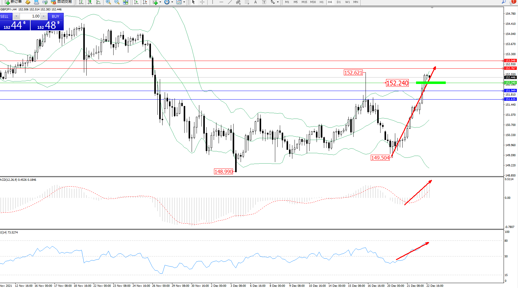 交易策略:152.240上方看涨,目标152.767、153.048