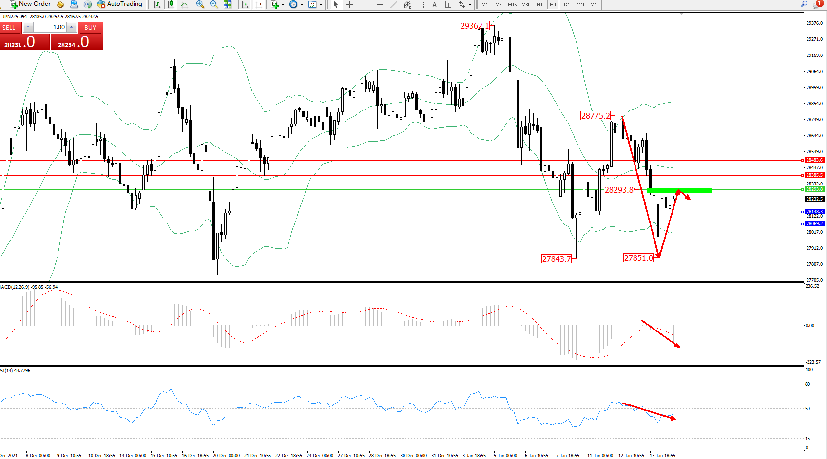 日经指数JPN225——4小时K线图显示: