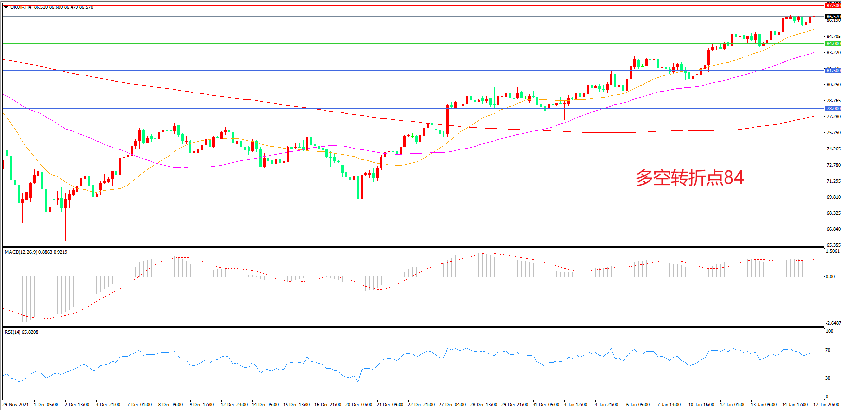 交易策略:在84.00之上看涨,目标87.50                 90.00