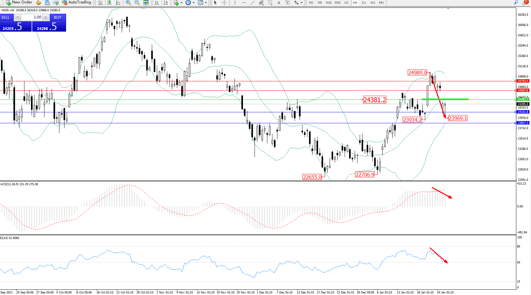 香港恒生指数1月25日(周二)收盘下跌412.85点,跌幅1.67%,报24243.61点;市场忧虑俄乌关系紧张,国际金融市场大跌,港股亦未能幸免。三大指数全天呈下跌行情,市场情绪降至冰点。大金融股、大型科技股等权重齐跌,美团、阿里巴巴、腾讯全天表现萎靡,中国平安更是大跌近6%。据澳门特区民航局消息,澳门特别行政区民航局已完成评估波音(BA.N)对其737MAX飞机系统更新所采取的适航和航空营运的改善措施,并经综合分析国家民用航空局和欧美民航监督机构对该型号恢复运行所颁布的适航指令后,确认波音737MAX飞机具备复飞条件,已恢复接受该飞机型号的航班申请。