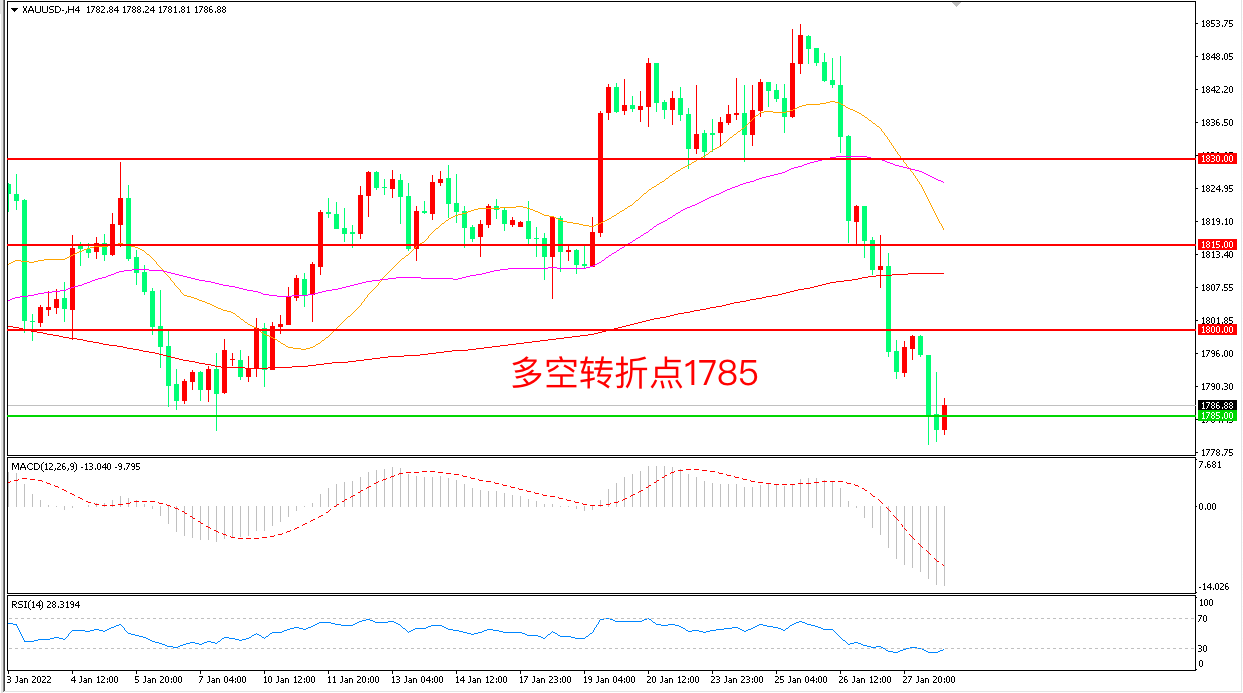 交易策略:在1785.00之下看跌,目标1760.00       1740.00