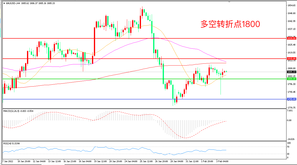 交易策略:在1800.00之上看涨,目标1815.00 1830.00