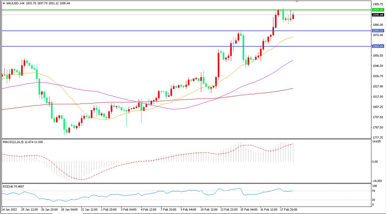 交易策略:在1900.00之上看涨,目标1915.00       1930.00