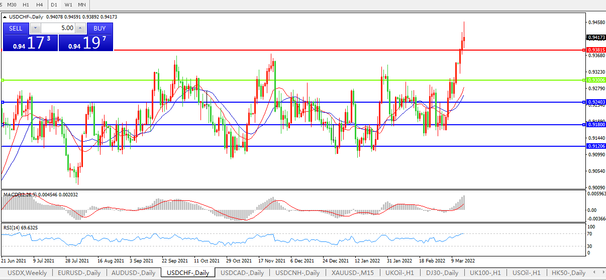 交易策略:0.9300上方看涨,目标0.9380、0.9500