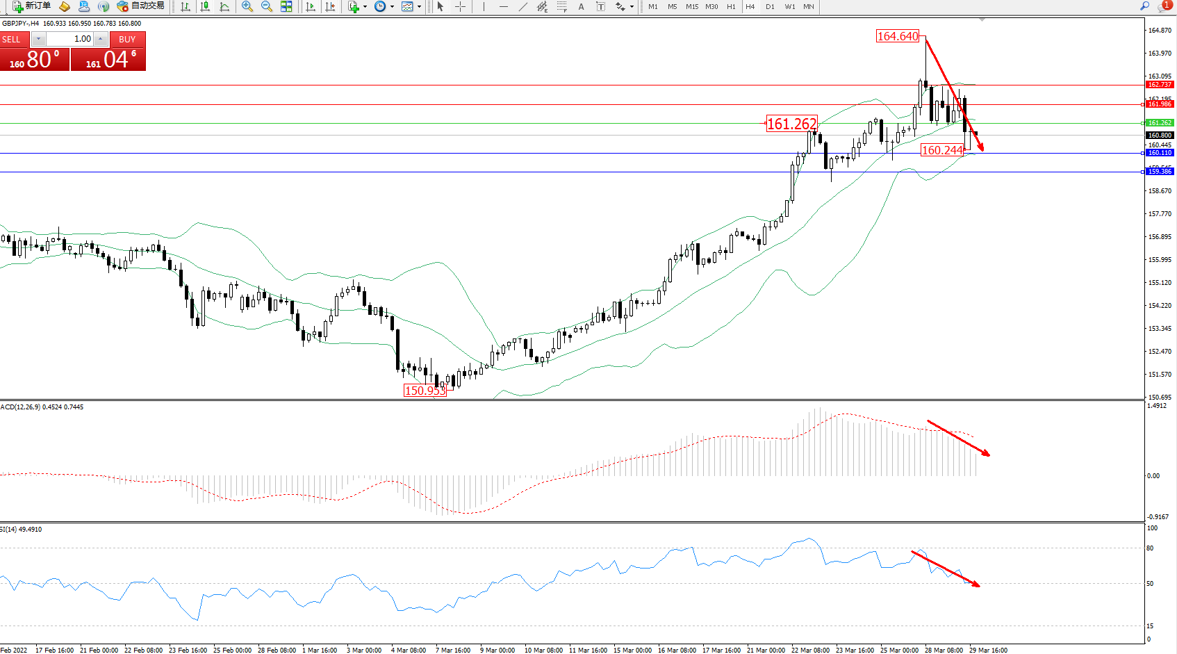 交易策略:161.262下方看跌,目标160.110、159.386