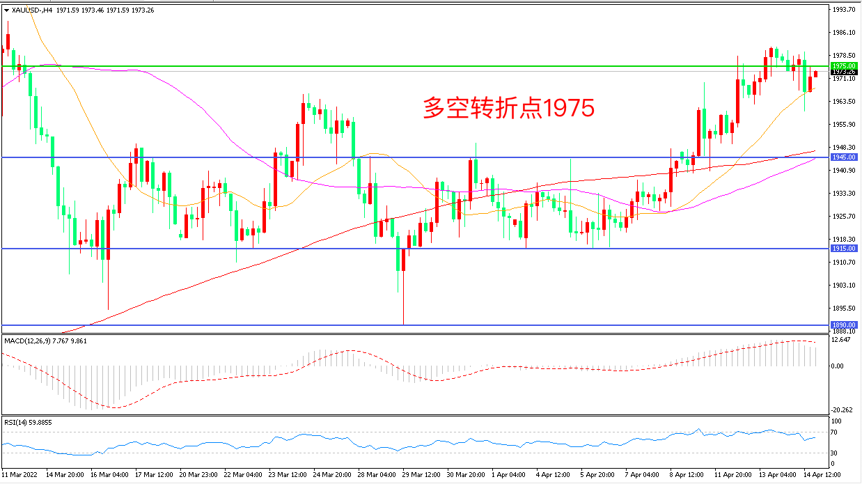4小时图看,金价长阴下破后小幅反弹,短期走势偏强,1975成为多空分水岭, MACD红柱缩短,RSI指标走平,日内震荡上行概率较大。