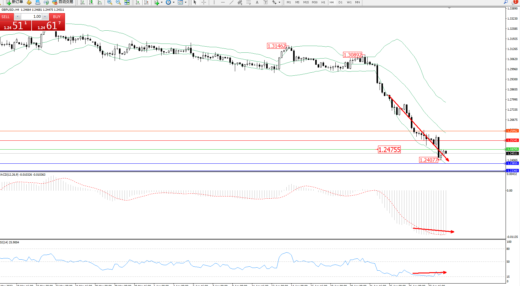 交易策略:1.24755下方看跌,目标1.23855、1.23360