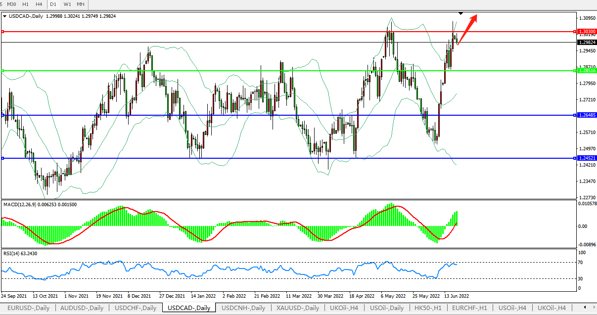 日线图看:持续运行于布林上轨整理蓄势 ,布林带指标开口走势上移中,MACD于0轴下上攻且量能快速放量,RSI快速走强,预计短期汇价大概率将进一步上行。