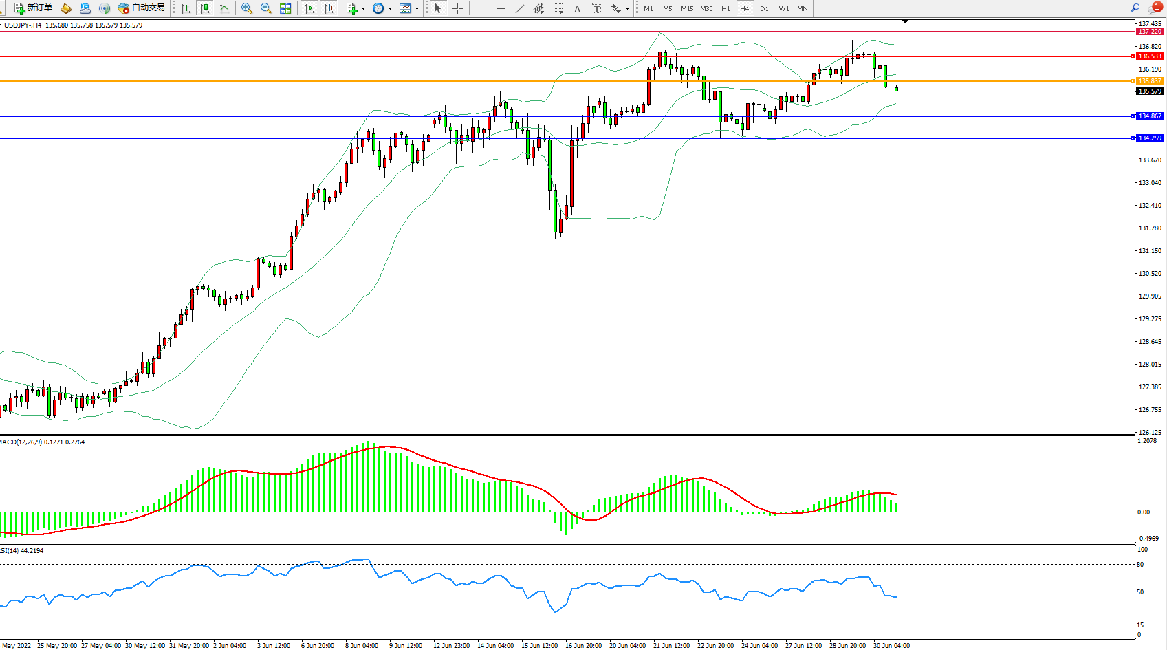 美元兑日圆维持135..579附近震荡,市场普遍预期6月份东京核心CPI年率将上升至2.1%,这或许预示着全国CPI数据会上升。预计这将刺激那些期待日本央行屈服于市场压力的交易员,在短期内给美元兑日元带来下行压力。