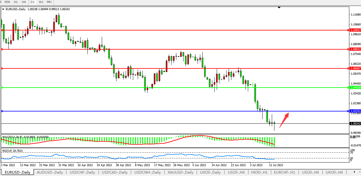 欧元兑美元稍早一度触及0.9951,为2002年12月以来最低,最后收跌0.37%,报1.0017。有市场分析称,在北溪1号项目重新启动之前,欧元仍有可能被抛售。