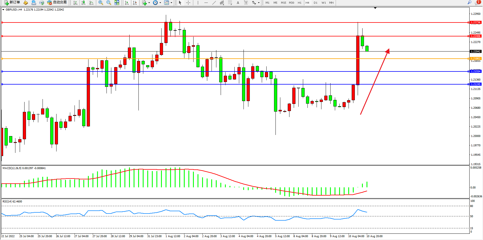 交易策略:1.21863上方看涨,目标1.22406、1.22736