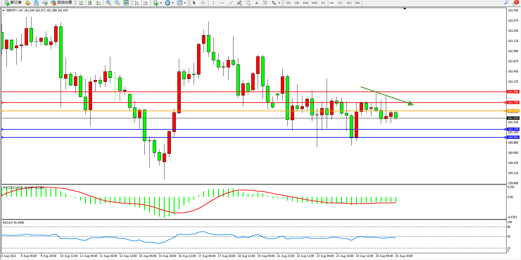交易策略:161.576下方看跌,目标161.170、160.993
