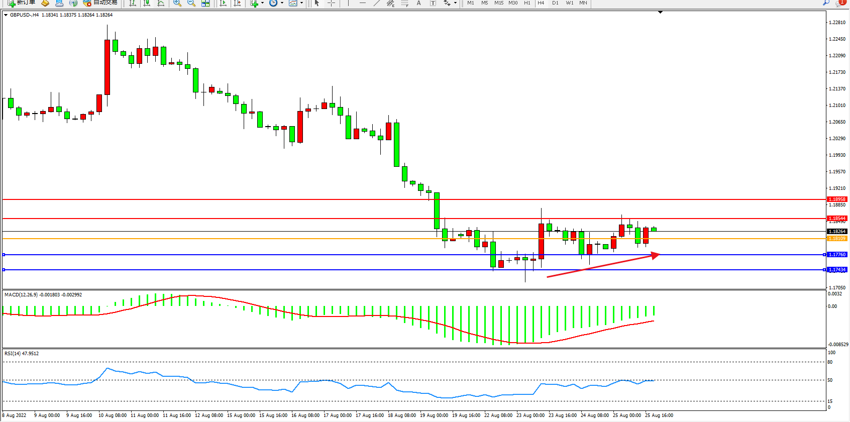 英镑兑美元维持1.18264附近震荡,英镑一直受到围绕英国通胀飙升和经济下滑担忧的打击,这些数据增加了英国经济将衰退的迹象。
