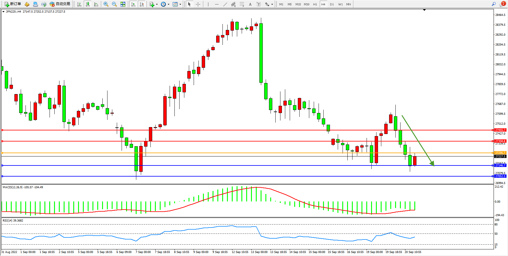 日经225指数9月20日(周二)收盘上涨133.85点,涨幅0.49%,报27701.50点。日本央行料将维持其短期利率目标为负0.1%,并维持10年期国债收益率目标在近零水准。无视全球加息浪潮。