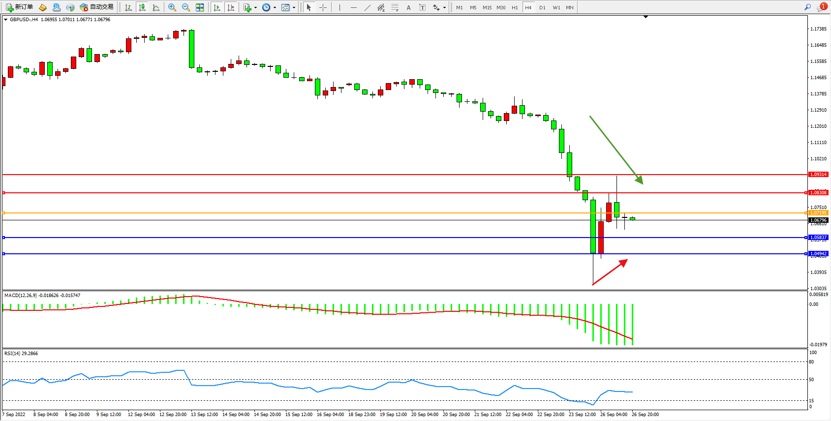英镑兑美元维持1.06796附近震荡,英国政府宣布大幅减税后,英镑大幅贬值,尽管有可能创下历史新低,英国政府如此行动的目的是推动英国经济增长趋势达到2.5%。