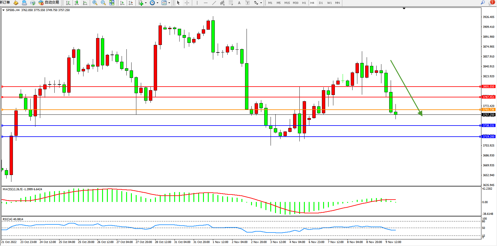 标普500指数11月9日(周三)收盘下跌79.21点,跌幅2.07%,报3748.90点;美联储鲍威尔表示将继续加息,导致市场调整利率峰值预期。美国激进加息导致美国国债收益率上升,并将美元兑大多数主要货币推高至多年高位,但人们越来越多地猜测这种趋势即将结束。